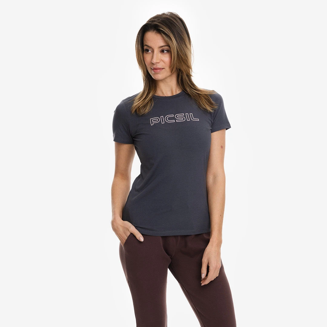 Camiseta de manga corta mujer para gimnasio con cuello redondo. Ligera y transpirable. Tejido suave. Logo en la parte delantera. Colección Core. Se adapta perfectamente al cuerpo, estiliza tú figura. Perfecta para tus sesiones de entrenamiento, en gimnasio, box o donde tú elijas.