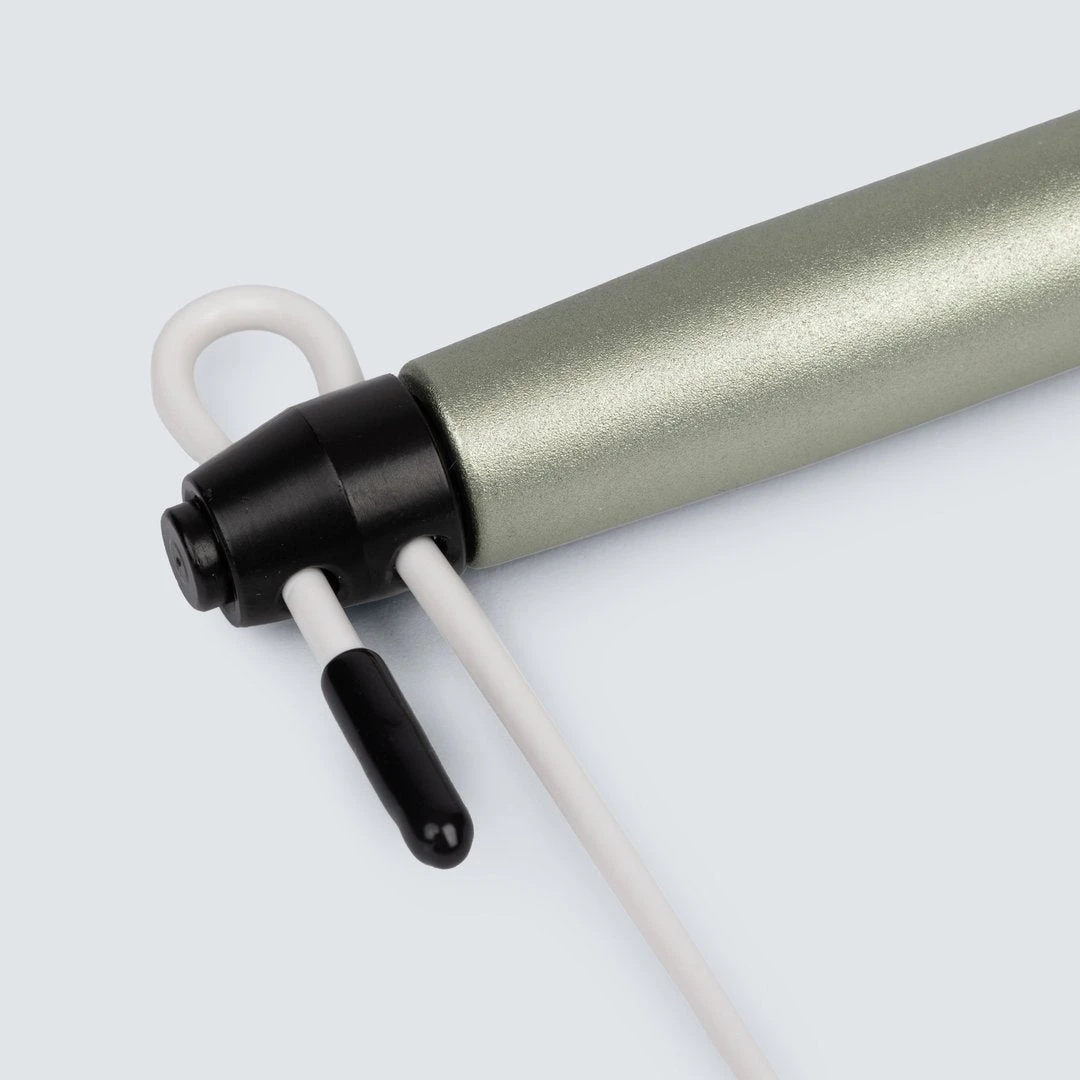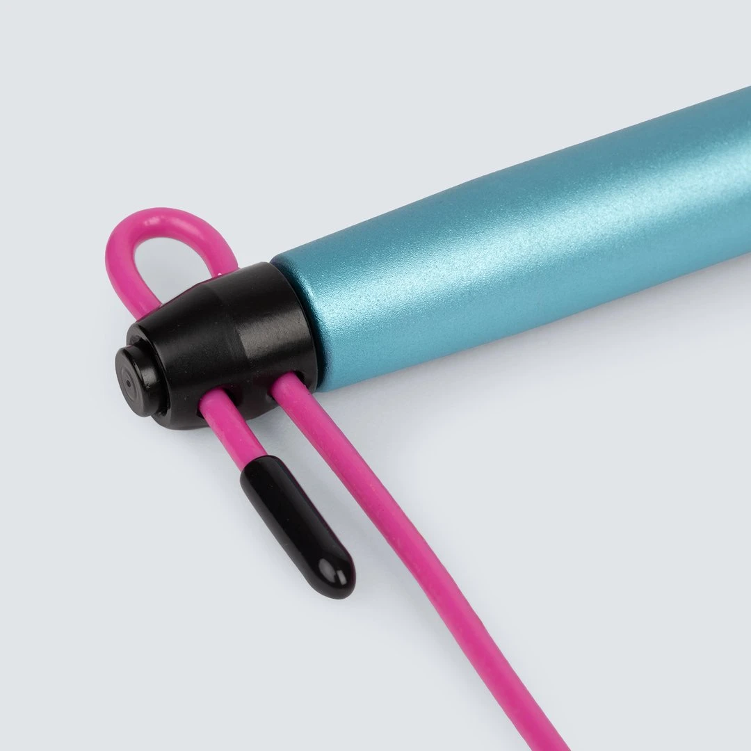 Comba rápida fabricada en aluminio con doble rodamiento y sin llaves, comba autoajustable. Ahora con juntas tóricas para mejorar su agarre y con un diseño del puño más ergonómico para una perfecta ejecución de nuestros saltos dobles. Extremadamente rápida y ligera