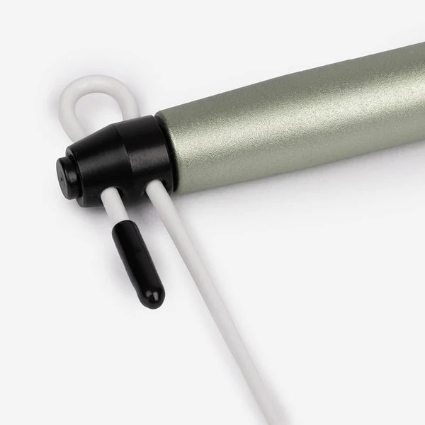 Comba rápida fabricada en aluminio con doble rodamiento y sin llaves, comba autoajustable. Ahora con juntas tóricas para mejorar su agarre y con un diseño del puño más ergonómico para una perfecta ejecución de nuestros saltos dobles. Extremadamente rápida y ligera.