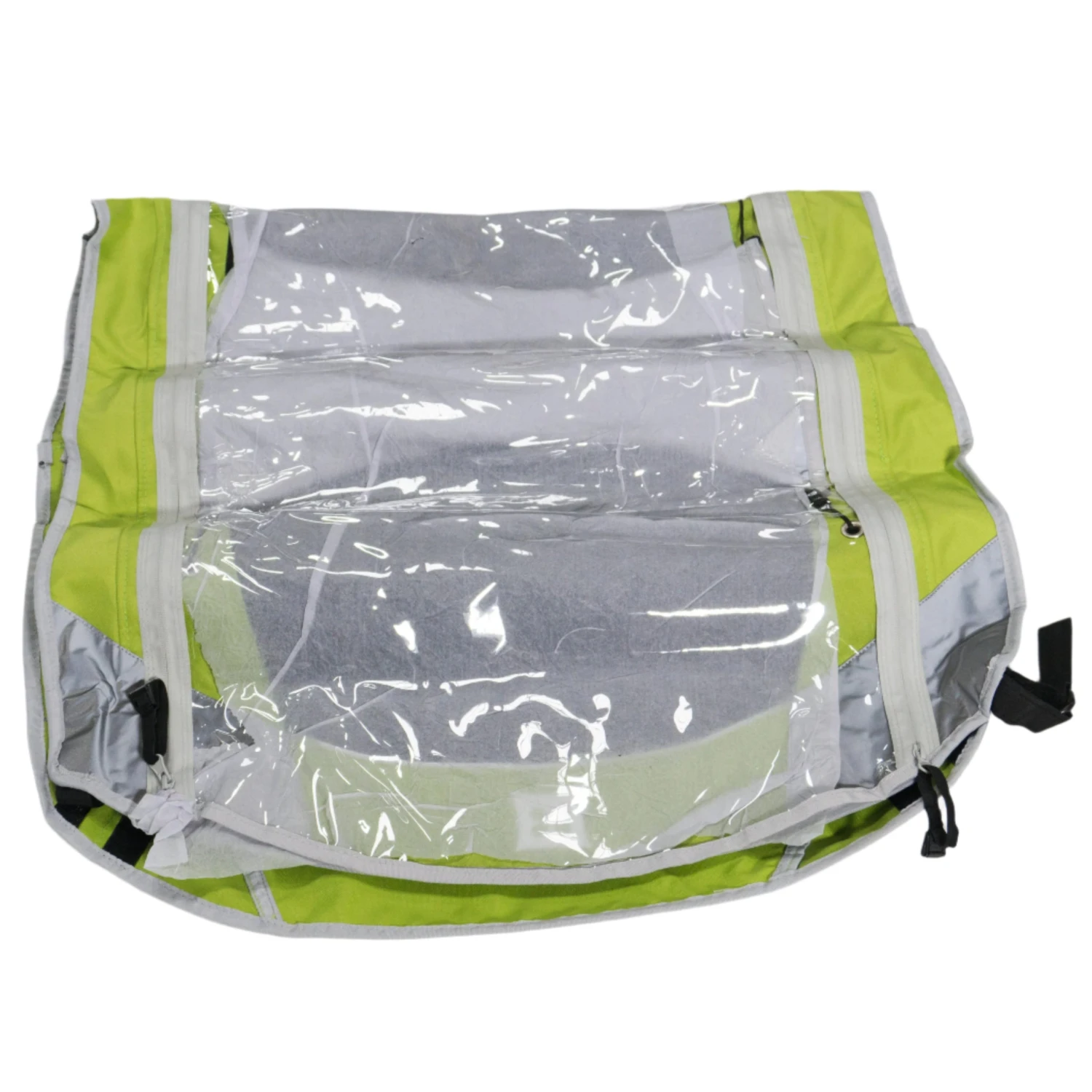 All-weather cover with water proof zippers and adjustable sunshade. Green. Compatible with:
