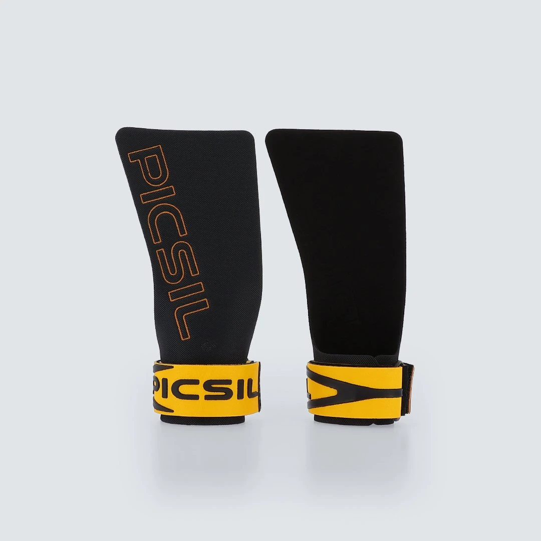 Calleras sin agujeros para uso con magnesio Golden Eagle Grips con la tecnología ‘Micro Diamonds’ mejorada con una doble extrusión de micro puntos para un agarre extremo. La superficie que cubre la muñeca tiene un velcro y una hebilla más ancha para una sujeción mayor, reforzada y ultrarresistente. Máxima protección, resistencia, ligereza y durabilidad. Diseño y material patentado.