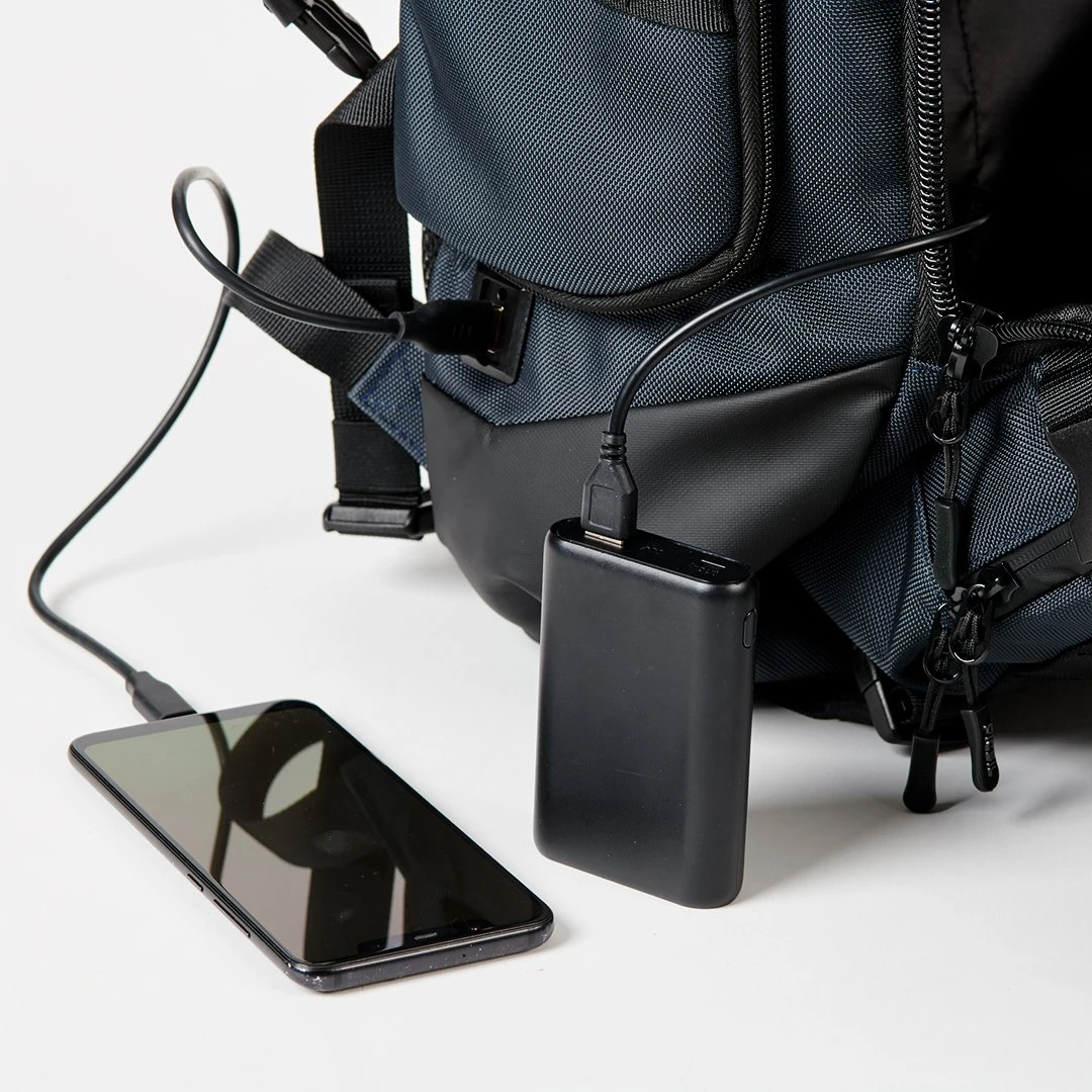 - Puerto USB con cable interno para conectar la batería portátil