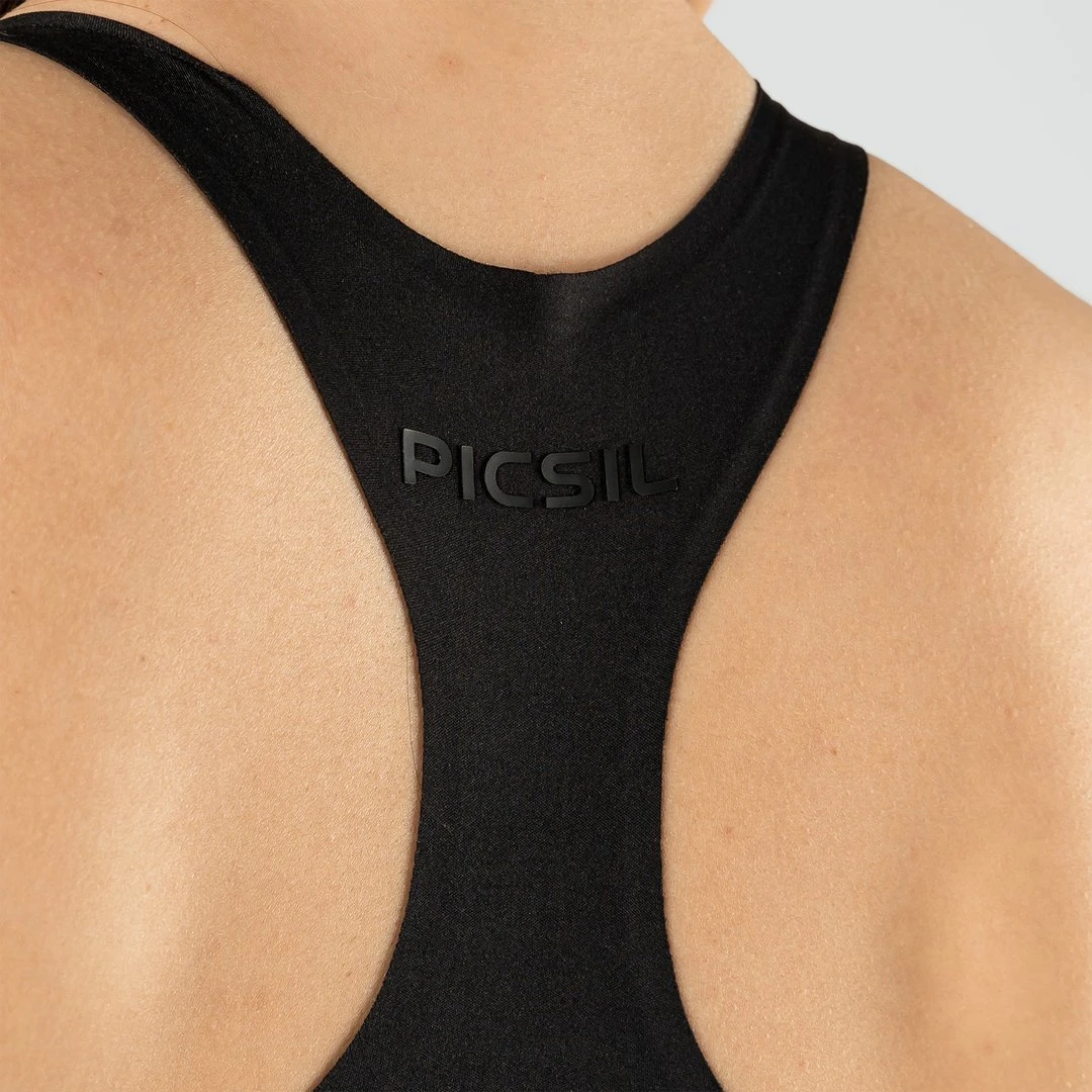 Diseño ergonómico y funcional con acabados de calidad: Espalda tipo racerback: Ofrece mayor rango de movimiento en brazos y hombros, distribuyendo el peso de forma más eficiente y dando estabilidad durante saltos o movimientos rápidos. Banda inferior ancha y elástica: Se adapta cómodamente al contorno sin enrollarse ni presionar en exceso, garantizando sujeción constante. Estética moderna: Disponible en tres colores versátiles – Black, Power Pink y Navy – con detalles de impresión en silicona o vinilo, aportando un look deportivo y profesional.